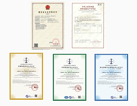 擁有建筑業(yè)企業(yè)多樣資質(zhì)。機(jī)電工程施工總承包貳級、建筑工程施工總承包貳級、石油化工工程施工總承包叁級、建筑機(jī)電安裝工程專業(yè)承包貳級、消防設(shè)施工程專業(yè)承包貳級、建筑裝修裝飾工程專業(yè)承包貳級、特種設(shè)備生產(chǎn)許可證。并通過IOS認(rèn)證。